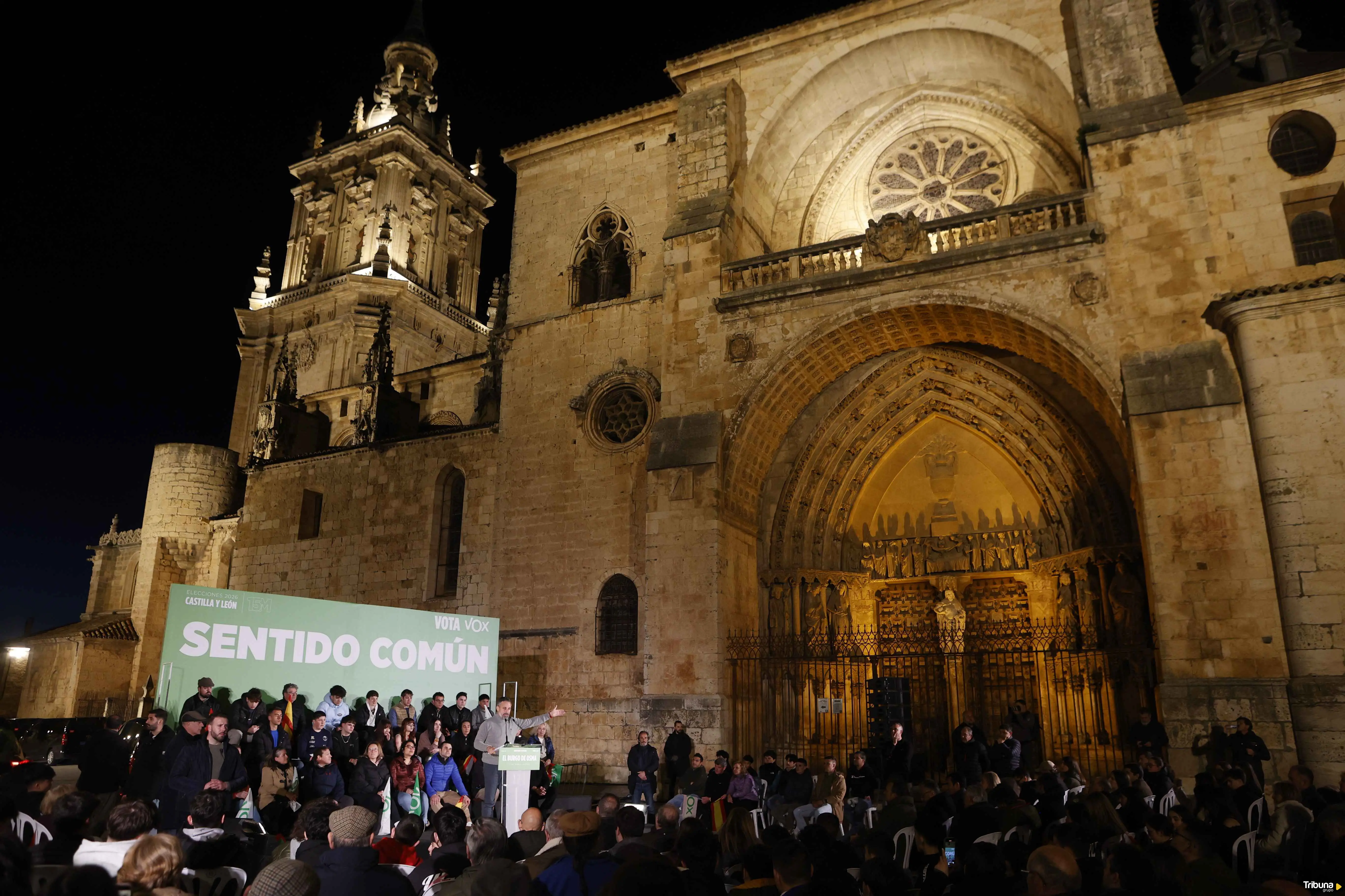 El presidente de Vox, Santiago Abascal, ha recalado este miércoles en El Burgo de Osma para pedir a los sorianos que dejen de lado el aspecto "emocional" y apuesten por lo "práctico". Durante un acto en la plaza de la Catedral, Abascal ha arremetido contra partidos localistas como Soria ¡Ya!, señalando que, aunque la formación pueda parecer "simpática", resulta "inútil" para los intereses de la provincia y la Comunidad, al actuar como la "muleta del PSOE y sus políticas".